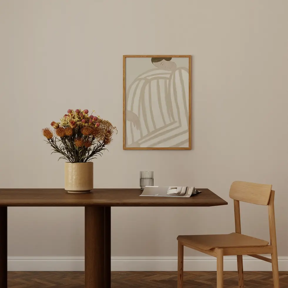 Our frames are made from FSC-certified wood and feature a PET finish, a sustainable material obtained from PET bottles collected from the oceans. Available in white, black, imbuia or natural finishes, they are the perfect choice to complement your work. All frames are assembled with foamboard and crystal glass, ensuring exceptional quality and durability.